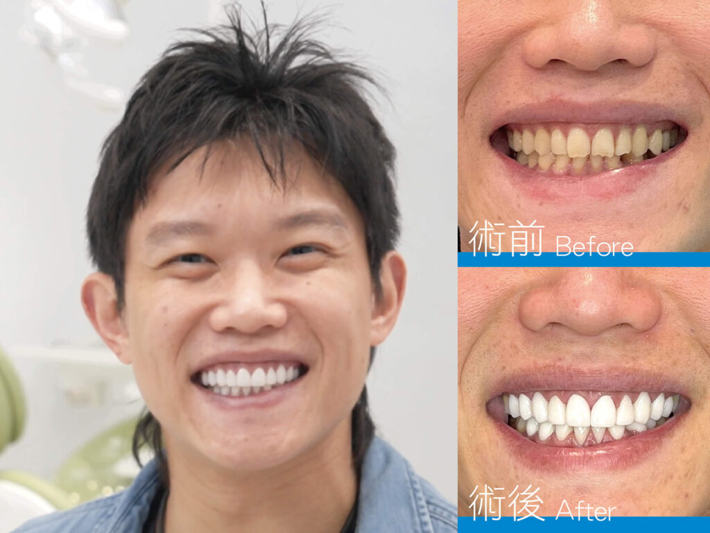 在陳冠宇這個案例中,法夏爾利用數位微笑設計,進行前牙美學設計模擬,團隊經多次比對討論,以期贗復物能精準完美地裝戴完成。過程中,醫師更與陳冠宇反覆溝通,確保最終成果能符合期待,共同打造陽光男孩最棒的自信笑容!